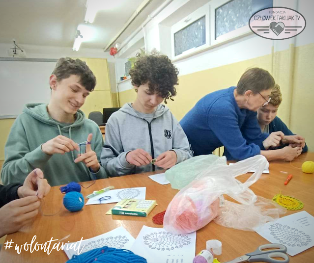 Sześć pań wolontariuszek, artystek rękodzieła, specjalnie dla nas przyjechało w tym dniu na warsztaty i przez cały czas ich trwania doradzało młodzieży, jak zacząć, a potem udoskonalać pracę z szydełkiem.